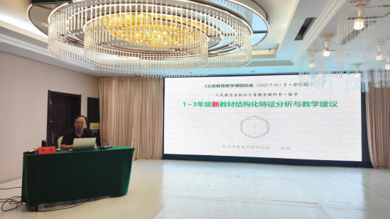 下午,宁夏小学数学教学研究会副秘书长胡明解读《1-3 年级新教材结构化特征分析》,从知识体系、能力培养、认知适配三方面分析教材优化方向,为低学段教学提供指引。