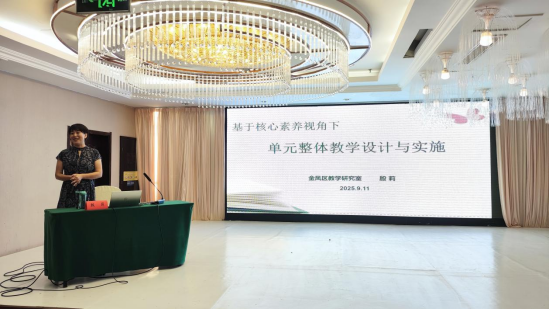 9月11日,培训聚焦单元整体教学。上午,殷莉老师以《基于核心素养下单元整体教学设计与实施》为题,用 “瓜藤论” 阐释单元整体教学内涵,强调其构建知识体系的优势,并以 “圆柱和圆锥” 单元为例,从教材分析、学情分析、内容重整等方面讲解实施步骤。